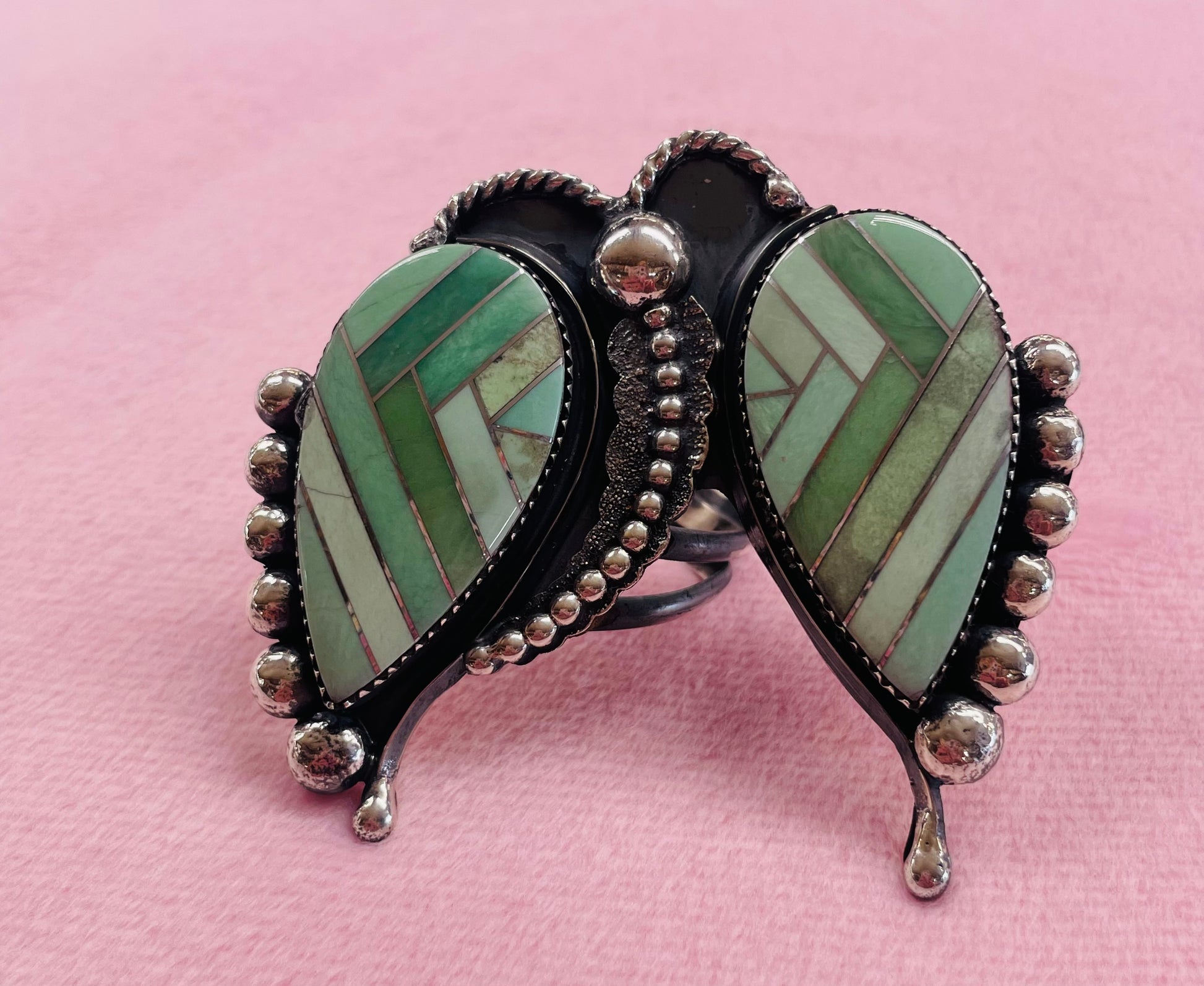 Hand made authentic Native American turquoise and sterling silver butterfly ring.