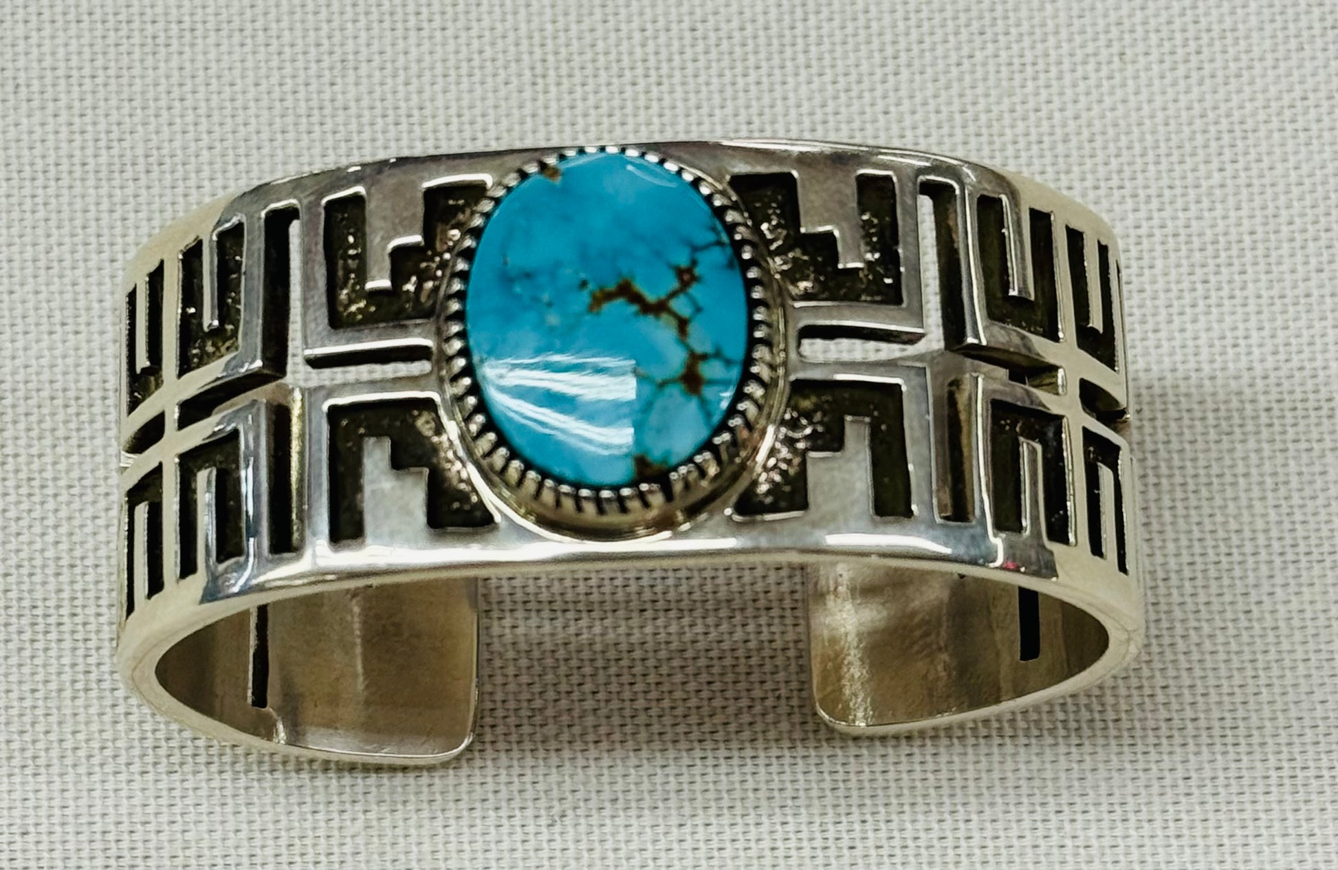 Hand made authentic Native American sterling silver bracelet with turquoise stone