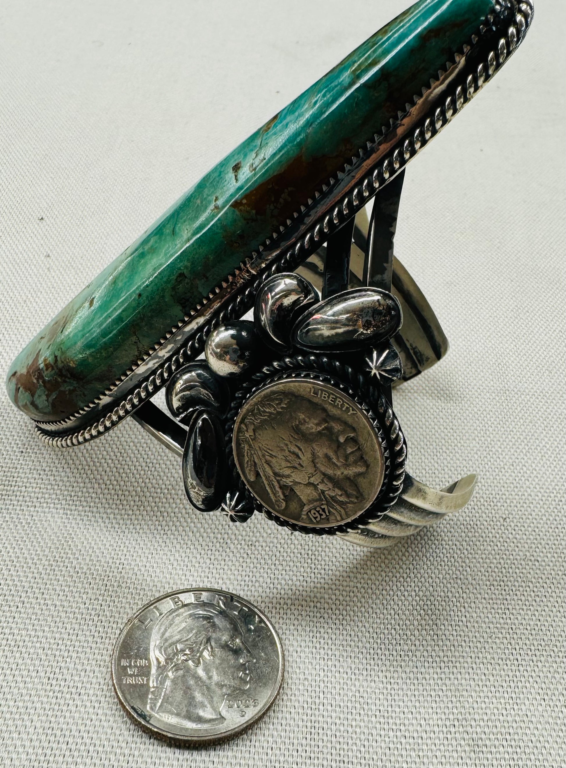 Turquoise and Silver Indian Head Nickels Bracelet