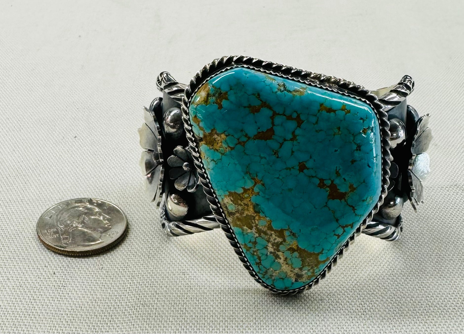 Turquoise Stone and Silver Flowers Bracelet